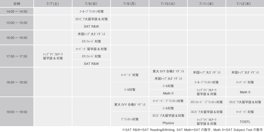 今年度、全米トップ大学受験を視野に入れる(そのためのテスト対策が必要な)高校生・中3生